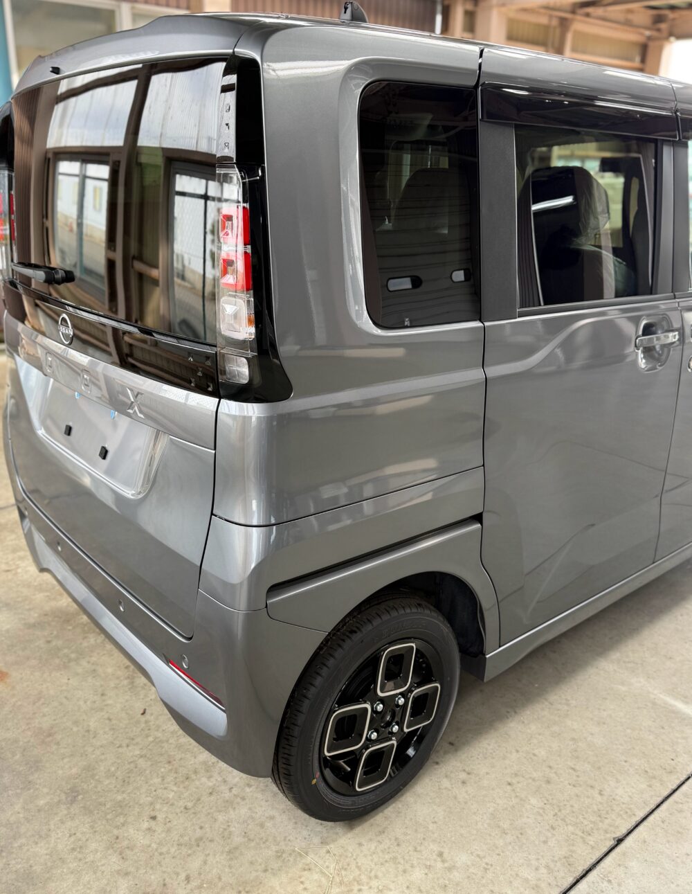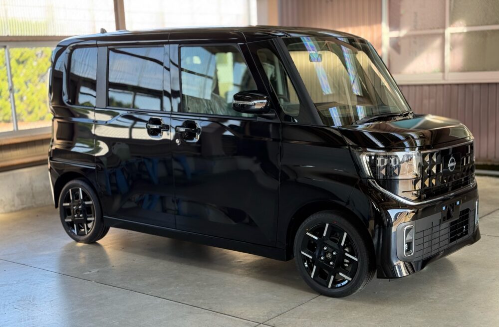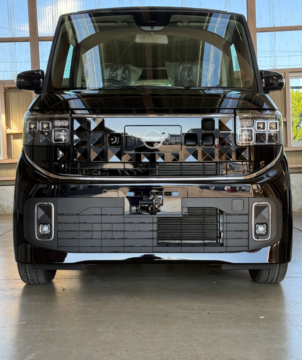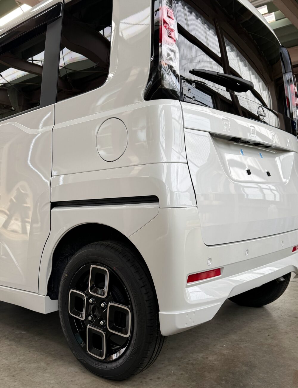 ボディの面積がしっかりあるルークスでは、黒特有の“収縮して見える”性質があまり働かず、逆に存在感がぐっと強まります。特にハイウェイスターだとフロント周りのデザインと相まって、コンパクトカーとは思えないほど迫力のある印象になりますね。黒が持つ締まり感と重厚さが、一段上の雰囲気を引き出してくれています。