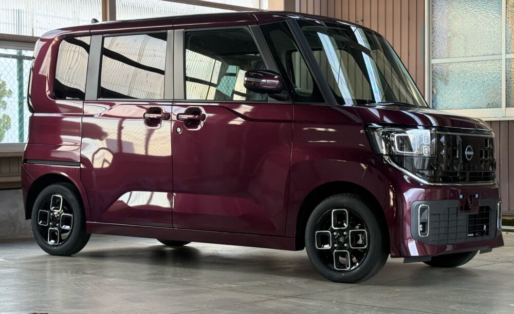 ボディカラーは深みのある濃い紫。ひと目で“かっこいい”と感じるクールな雰囲気があり、ハイウェイスター専用色として設定された理由もなんとなく納得できますね。紫といっても派手さより重厚感が勝っていて、全体の印象をぐっと引き締めてくれます。